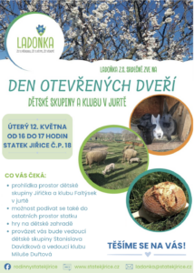 Spolek Ladoňka z.s. vás srdečně zve na DEN OTEVŘENÝCH DVEŘÍ dětské skupiny a klubu v jurtě.